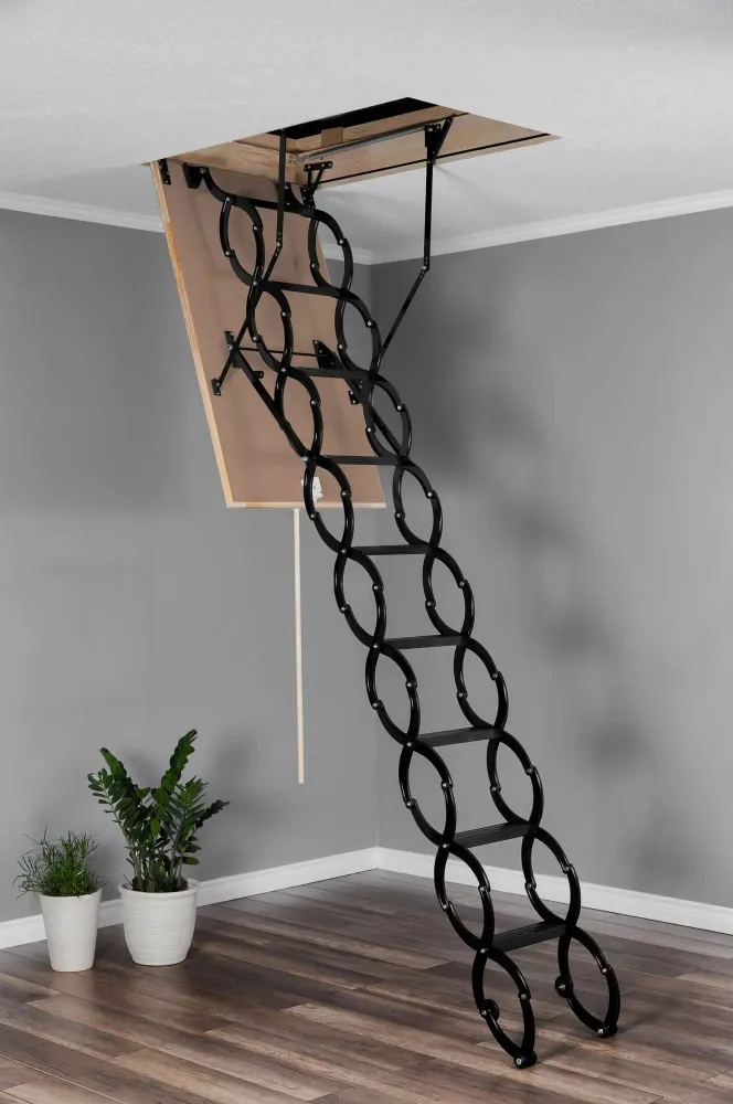 Чердачная лестница ножничного типа металлическая с люком толщиной 26мм OMAN TERMO GREY 60х120х290см