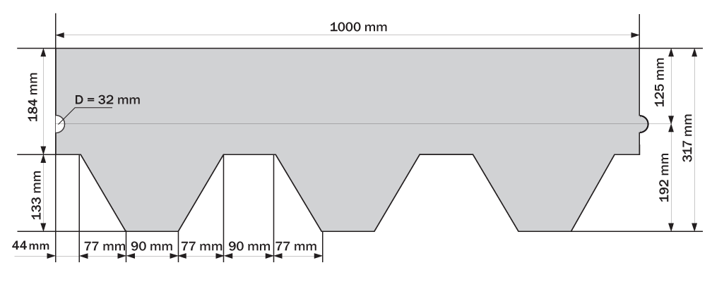 Широкий конёк/карниз позволяет: 23% снизить затраты (из одной упаковки получается 21 м.п. карниза и 17 м.п. конька),