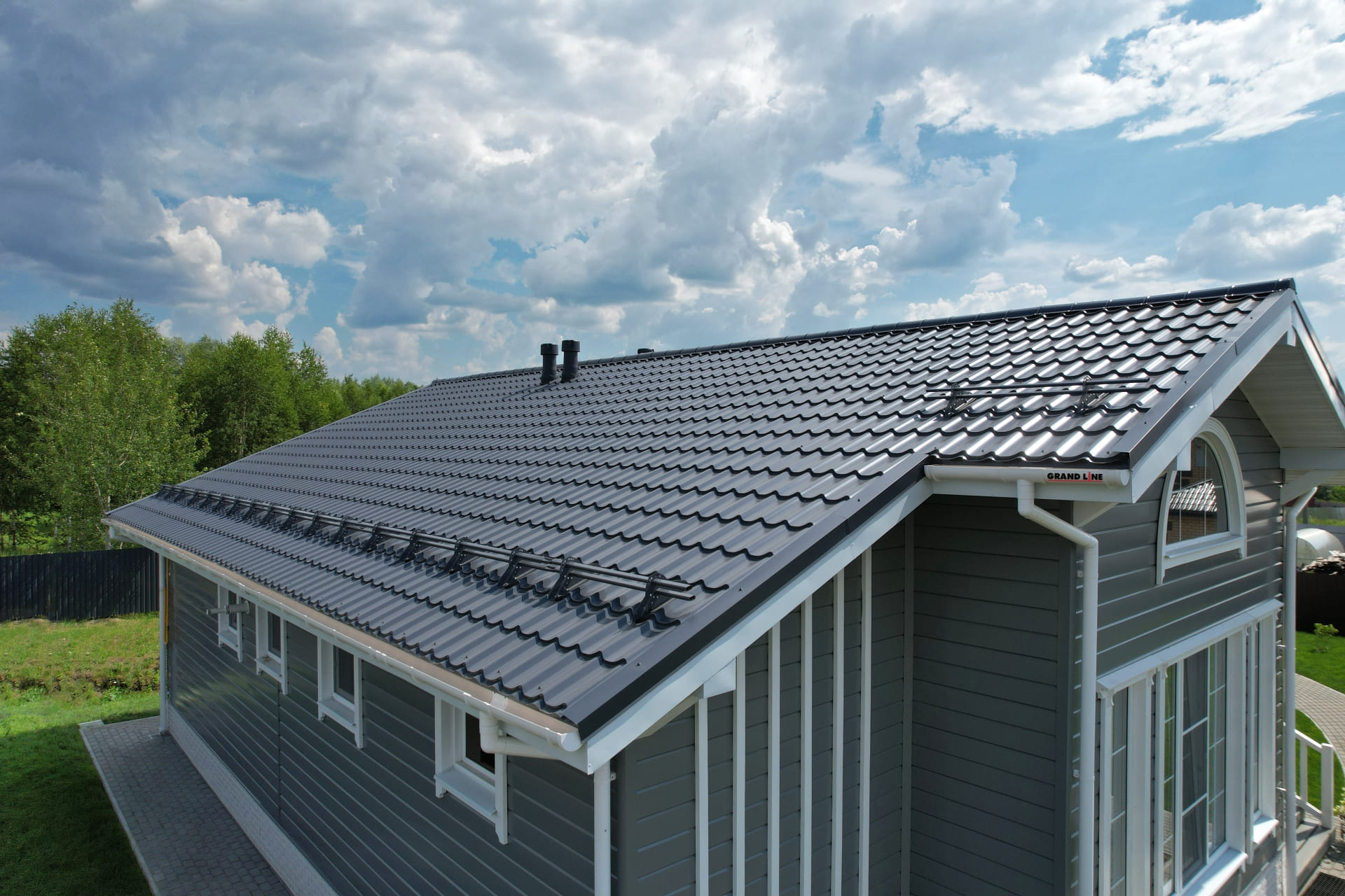 Металлочерепица Гранд Лайн / Grand Line, Classic, PE 0,45 цвет RAL9006 белый алюминий