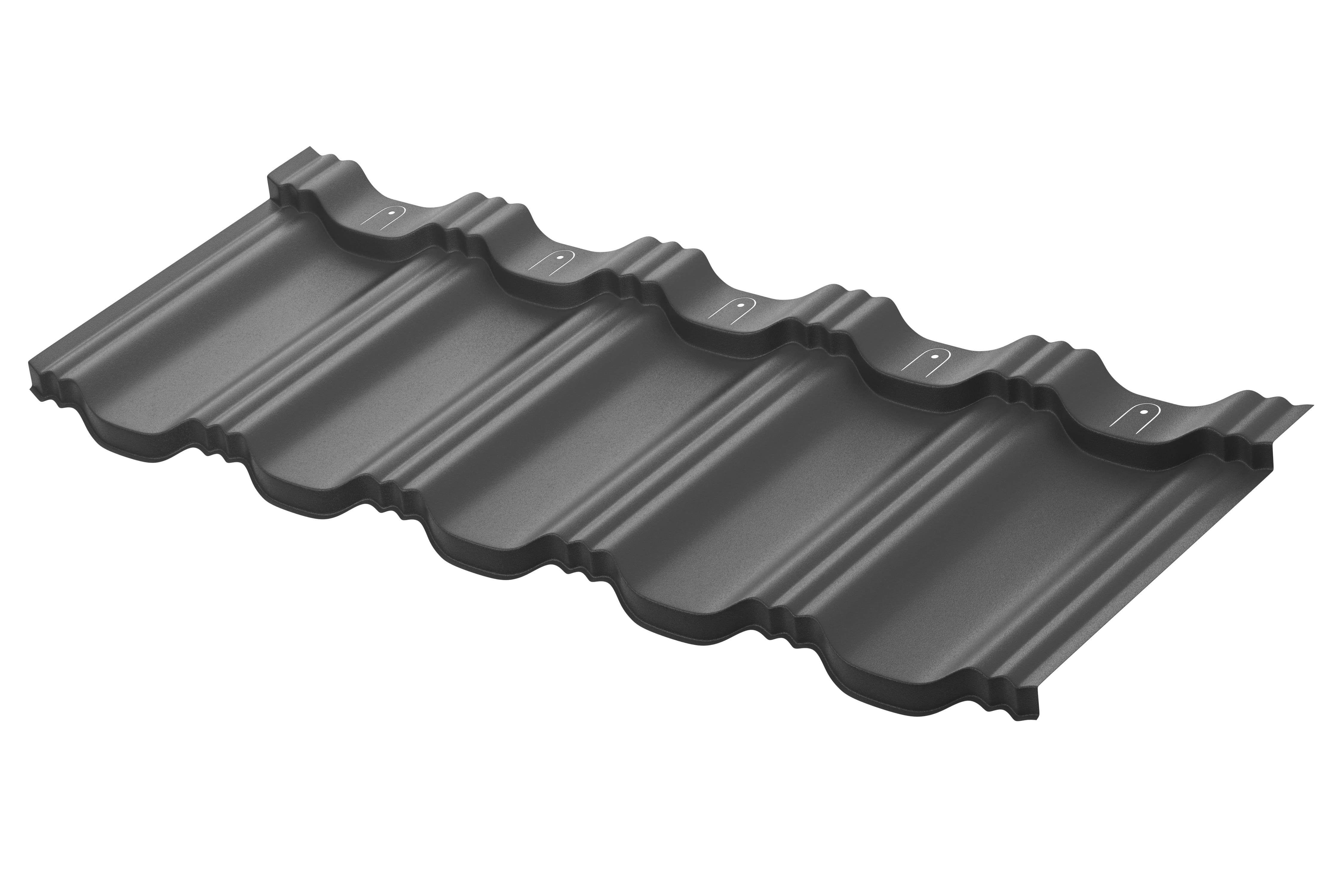 Металлочерепица модульная АкваСистем / Aqua System, Гётеборг, Rooftop Бархат матовый 0,5мм, RAL7016 тёмно-серый. Типоразмер 1205х765мм, высота профиля 30 мм, габаритная площадь – 0,922 кв.м.; полезная площадь - 0,791 кв.м.