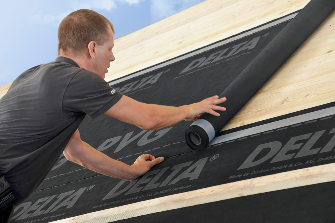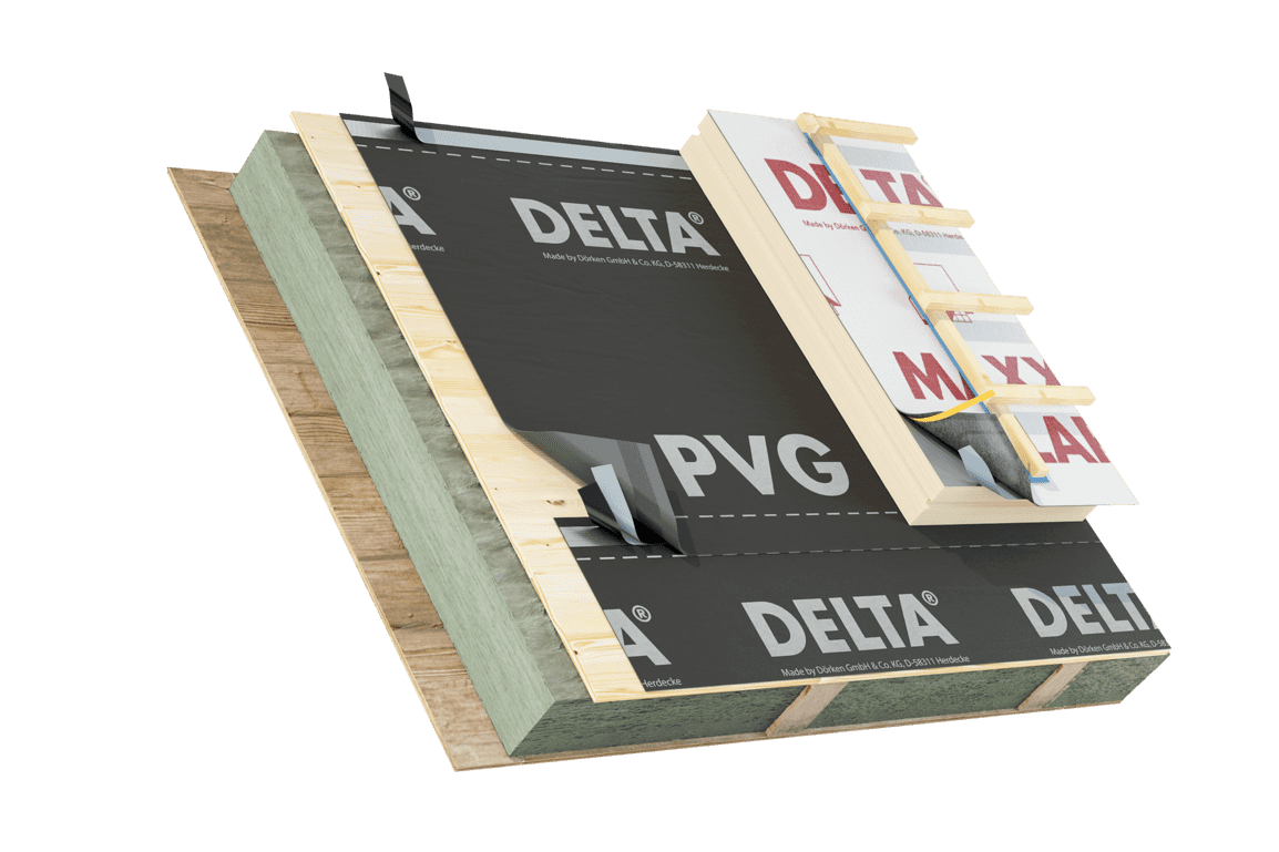 Delta PVG гидро- и пароизоляционная плёнка, предназначенная для холодных кровельных конструкций и крыш с двойной вентиляцией. Также применяется в качестве воздухо-, пароизоляции по сплошному настилу, Sd=25 м. При малом весе обеспечивает хорошую защиту от задуваемой пыли, дождя и снега. Способна полгода выдерживать интенсивное воздействие УФ-лучей, поэтому может применяться в качестве временной защиты постройки.