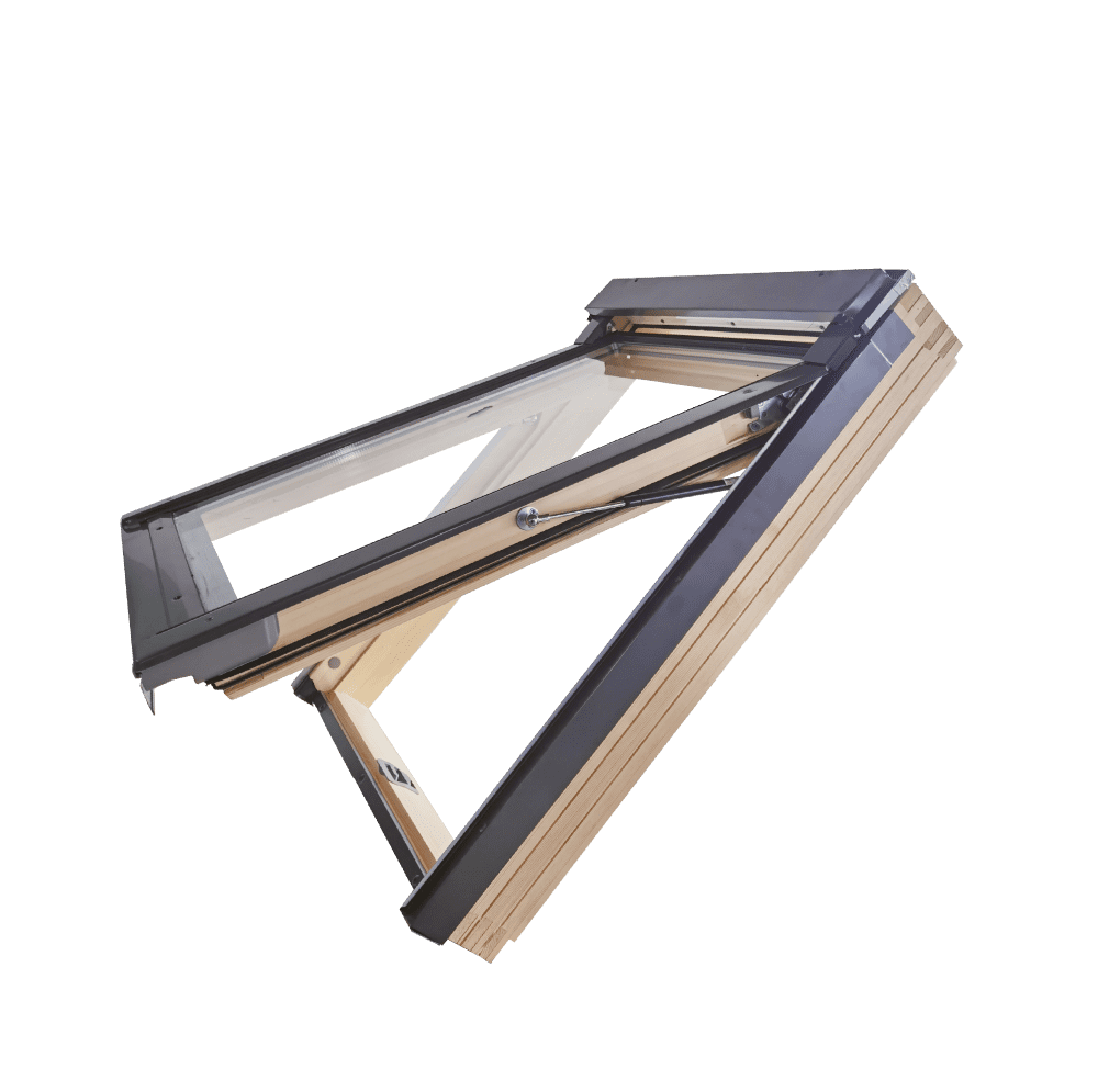 Мансардное окно FAKRO FTP-V (CH) с комбинированной системой открывания и вентклапаном открывает панорамный красивый вид. Модель изготовлена с применением сосновой древесины, оснащена однокамерным энергосберегающим морозостойким стеклопакетом, внешнее стекло закаленное.